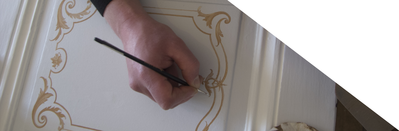Après reprise complète des enduits et des teintes, le parquet nettoyé des traces de mortier et soigneusement poncé a retrouvé des couleurs…l’appartement ayant du charme et son propriétaire un faible pour le XVIII ème , il a été décidé de composer un décor léger sur les portes de communication et celles des placards, rappelant les décors peints sur boiseries en vogue à cette époque. Nous avons pris quelques libertés stylistiques, l’immeuble datant du début du XIX ème, au profit de l’esprit d’un certain art de vivre désuet…